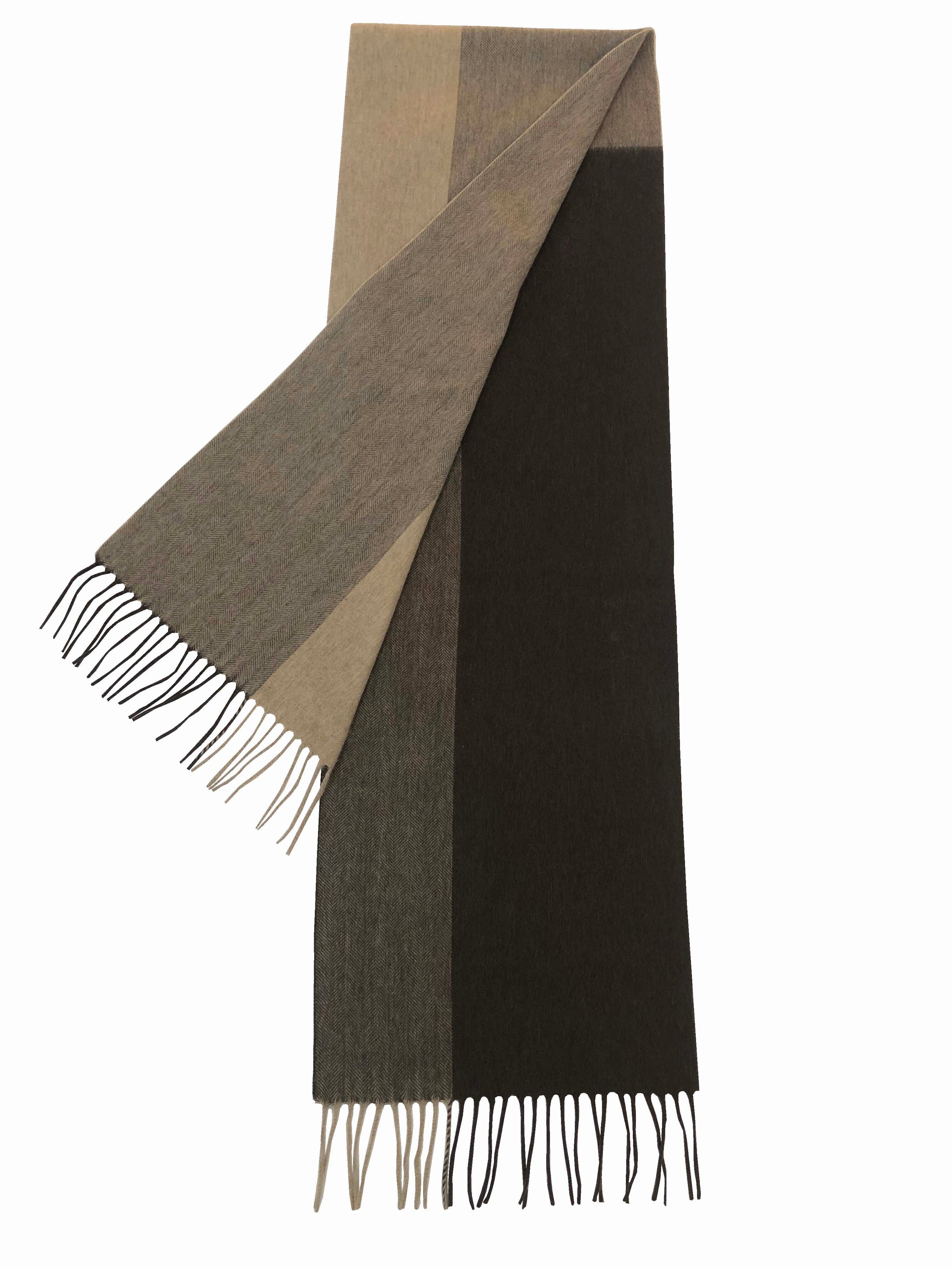 テネルカシミヤ・ブロックチェックマフラー・ベージュブラウン