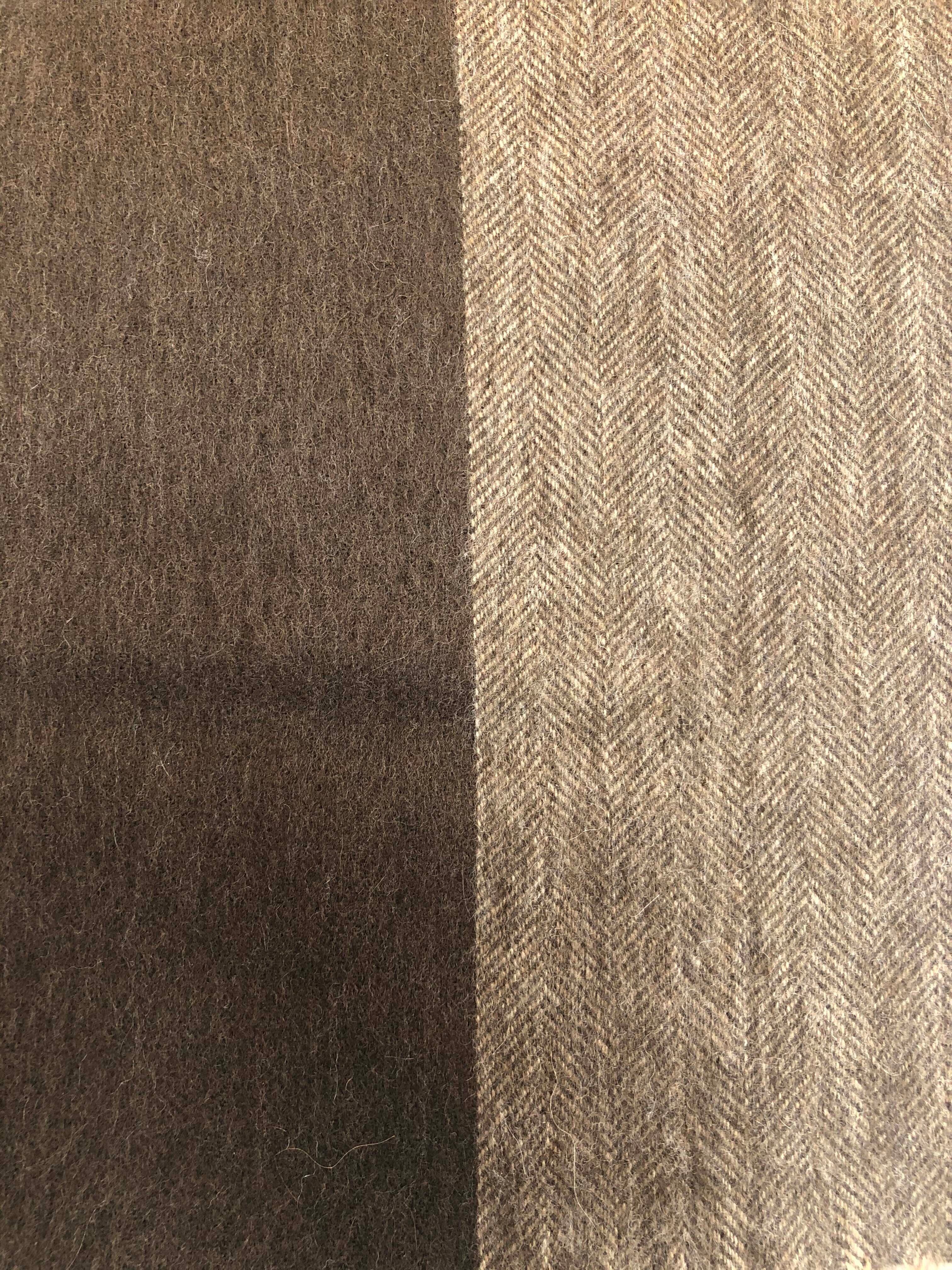 商品説明・・・メーカーオリジナルのウールとカシミヤの混紡糸で織り上げました。ウールは繊維長の細いものにこだわり、カシミヤに近い糸を選びました。そのウールの糸はカシミヤ糸に近い15ミクロンのものを採用しております。(カシミヤ糸平均14ミクロン)その一手間も二手間もかかる原料の選定から行った商品です。