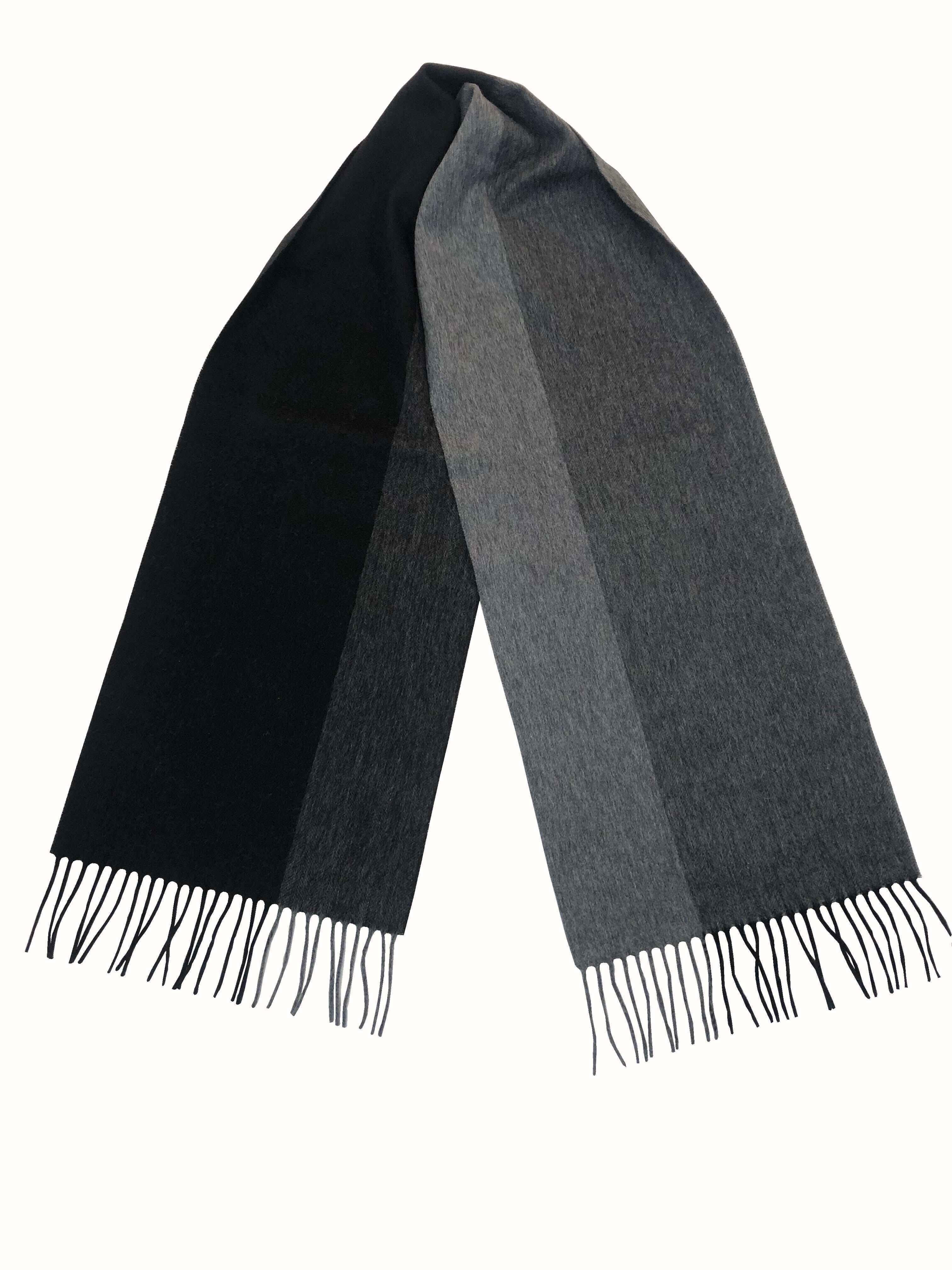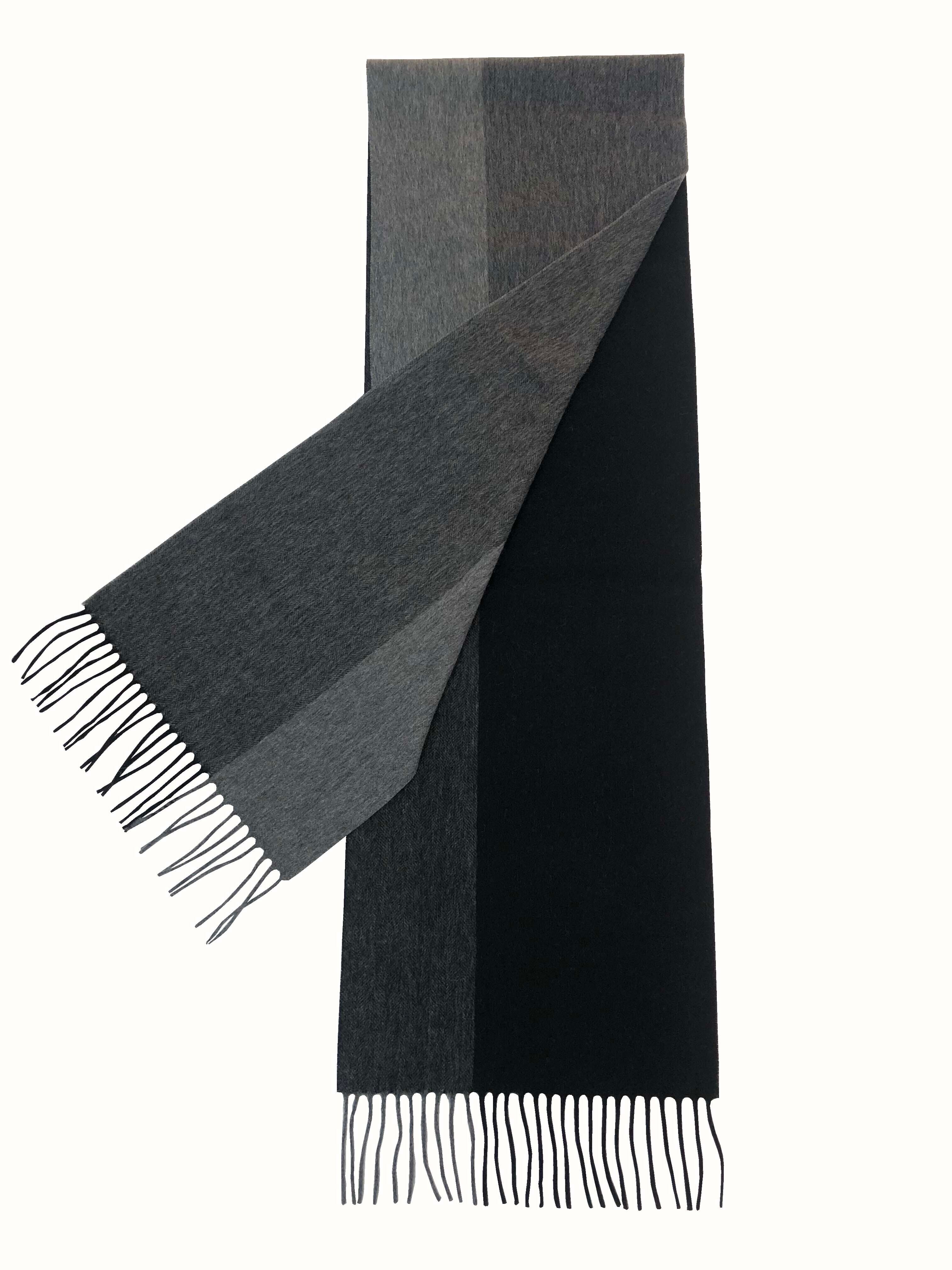 テネルカシミヤ・ブロックチェックマフラー・ブラックグレー