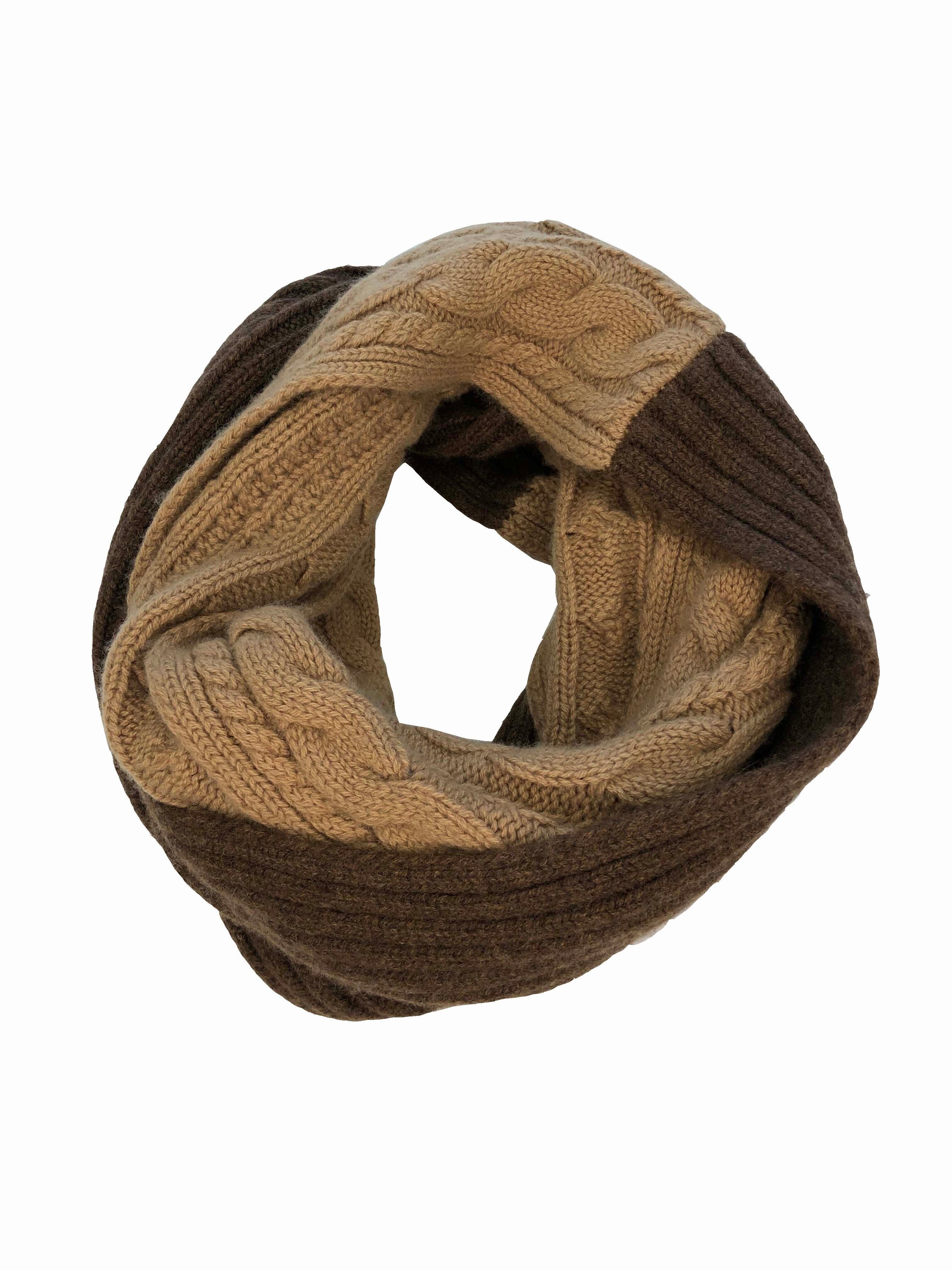 カカオ染めカシミヤドーナッツスヌード・ミックス編み・キャラメル